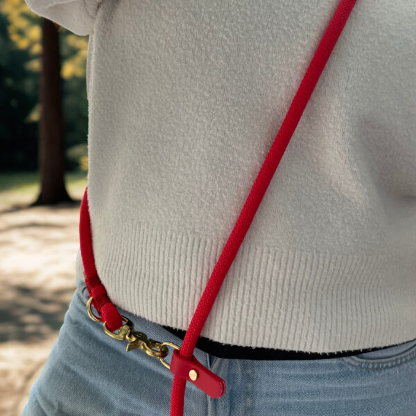 Χειροποίητος handsfree οδηγός σκύλου 2,2m. Μπορεί να φορεθεί με πολλούς τρόπους αφού προσαρμόζεται με το slider από biothane στο μήκος που θες.