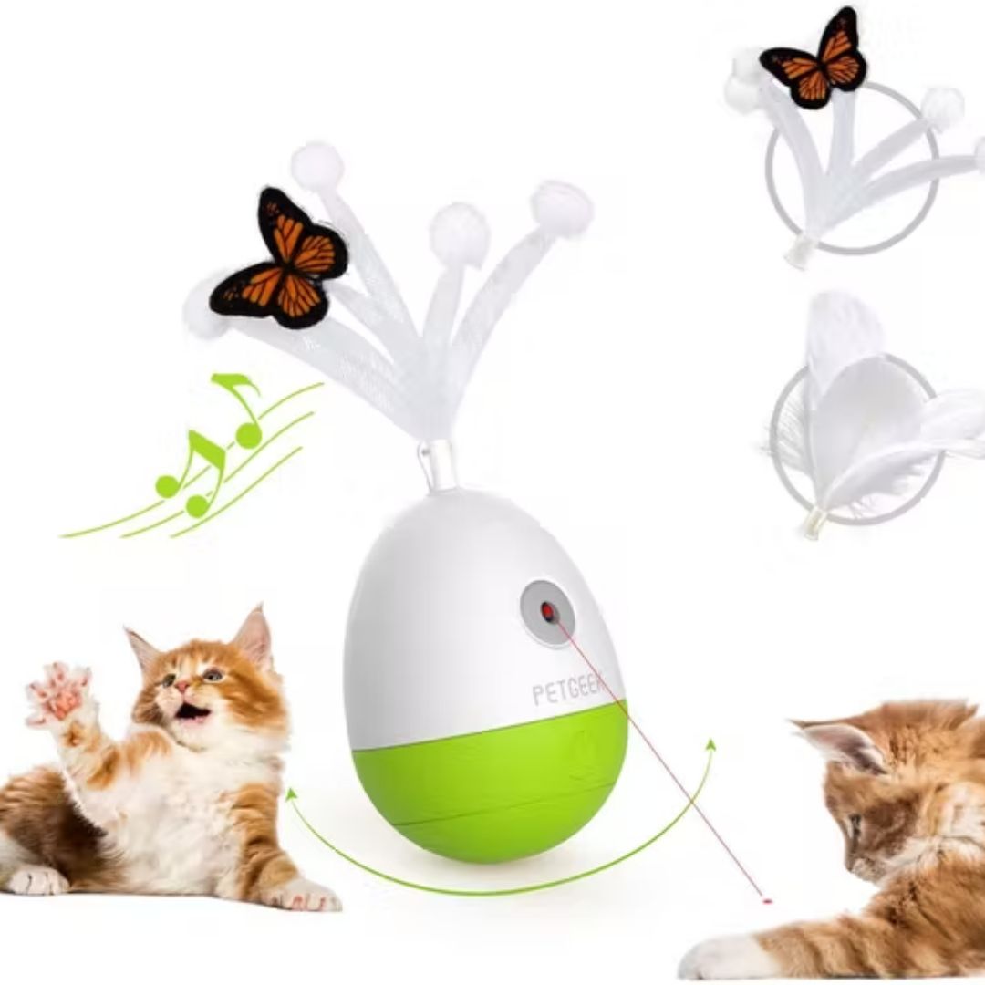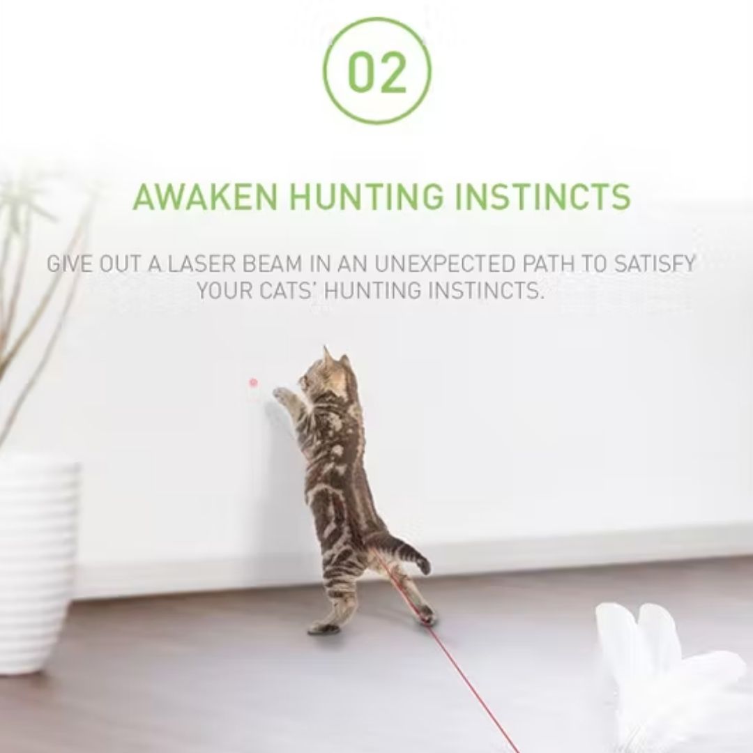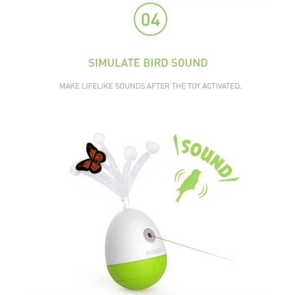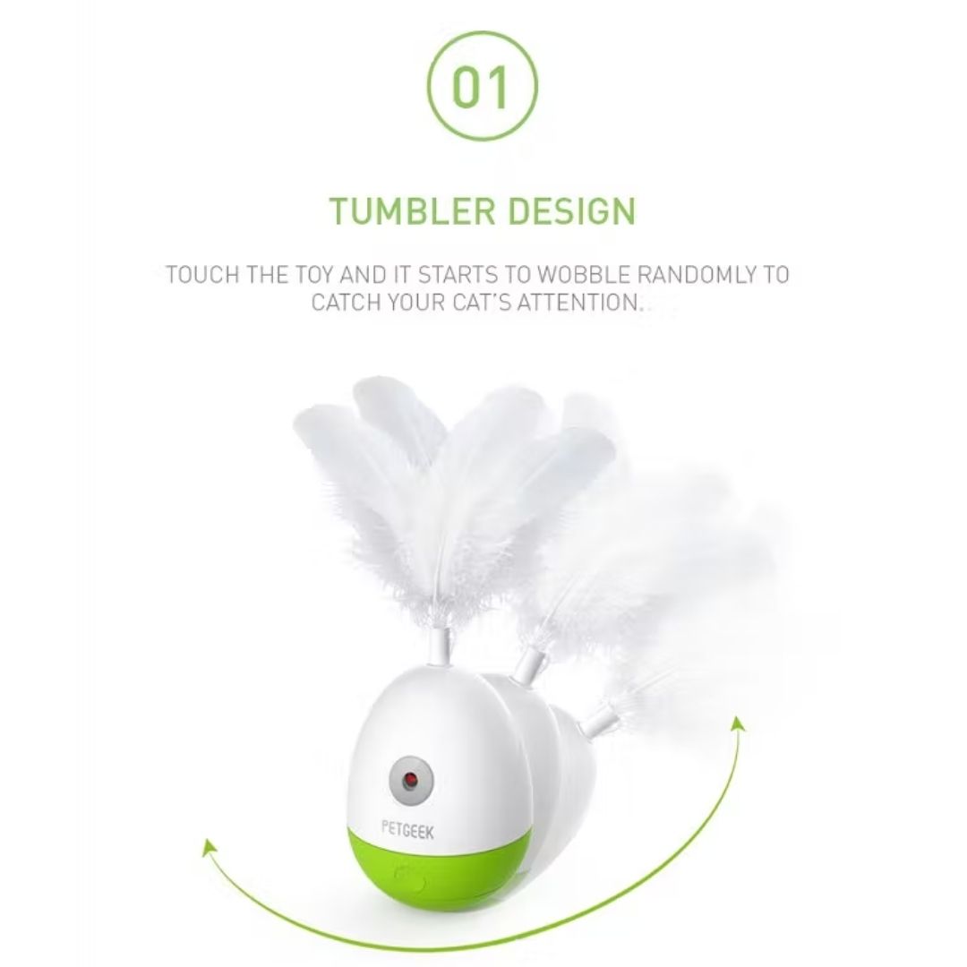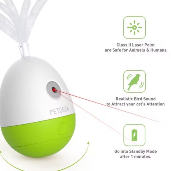 Έχεις γάτα που λατρεύει τα λέιζερ; Μια γάτα που της αρέσει να παίζει και να είναι δραστήρια; Τότε το λέιζερ Petgeek Egg είναι αυτό που ψάχνεις. Αυτό το παιχνίδι για γάτες νέας γενιάς παρέχει κάθε άνεση, για παράδειγμα, είναι εξοπλισμένο με περιστρεφόμενο λέιζερ και κάνει έναν ρεαλιστικό ήχο πουλιών. Ο στρογγυλός πάτος το κάνει να ταλαντεύεται στη θέση του, κάτι που δίνει μια επιπλέον διάσταση στο παιχνίδι. Το περιστρεφόμενο λέιζερ ενεργοποιείται εύκολα με την αφή. Όταν είναι ενεργό, περιστρέφεται γύρω από τη γάτα σου προς απροσδόκητες κατευθύνσεις. Το λέιζερ Petgeek Egg μιμείται έναν ρεαλιστικό ήχο πουλιών για ακόμα περισσότερη διασκέδαση.